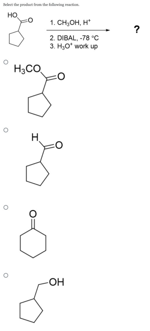 Solved Select The Product From The Following Reaction Ho 1 Chegg Com