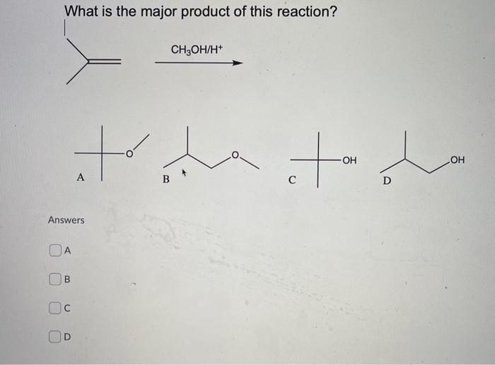 Solved What Is The Major Product Of This Reaction Ch3oh H Chegg Com